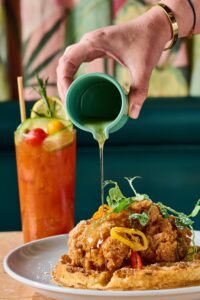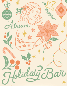 Located at Atlanta’s iconic Ponce City Market, Atrium is an eclectic and bright reprieve. The design is a celebration of local artisans and craftsmen; from woodwork throughout the space and hand-painted tiles on the bar to floral installations and an imaginative mural, each detail of the interior is made for and by the community. Curious about the artisans?